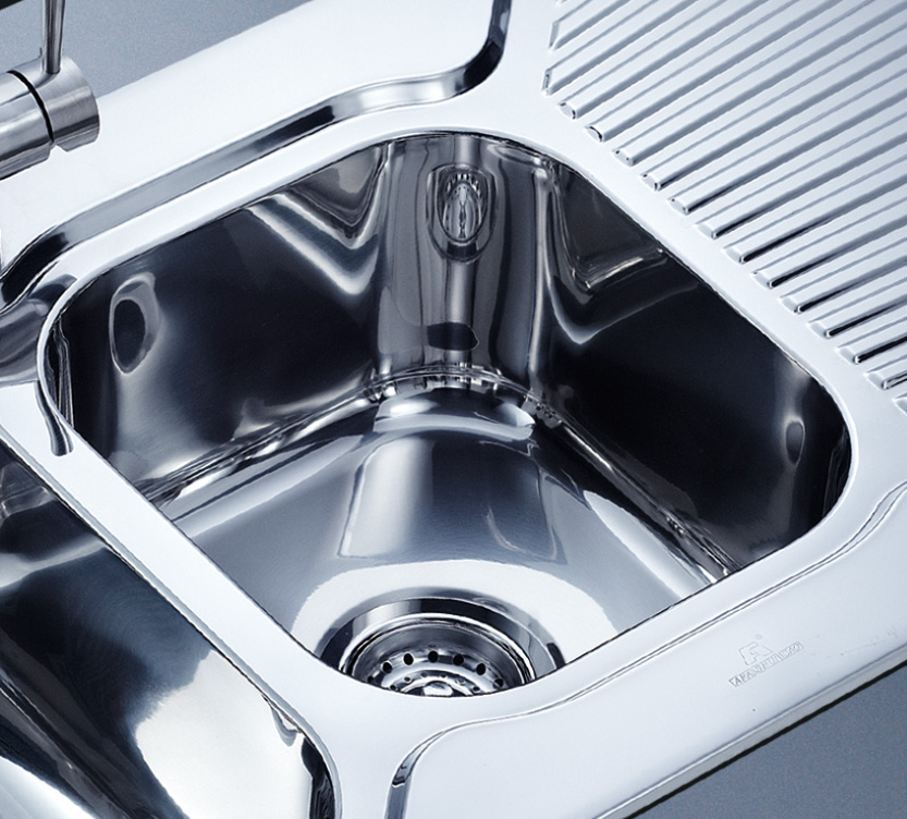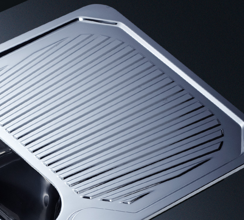 阿發水槽立邊采用國際先進的10-25°小R角一次成型拉伸技術,更具立體感與時尚潮流,亦能充分擴展水槽利用空間;一次成型拉伸技術,杜絕了焊接工藝易產生的水槽生銹,脫焊事故,充分保障水槽50年以上的使用壽命