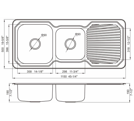 槽底采用斜面壓痕,四輻導流槽設計,與平面壓痕和無痕水槽相比,導水更為流暢,下水更迅速,能有效防止積水,消除沉淀物