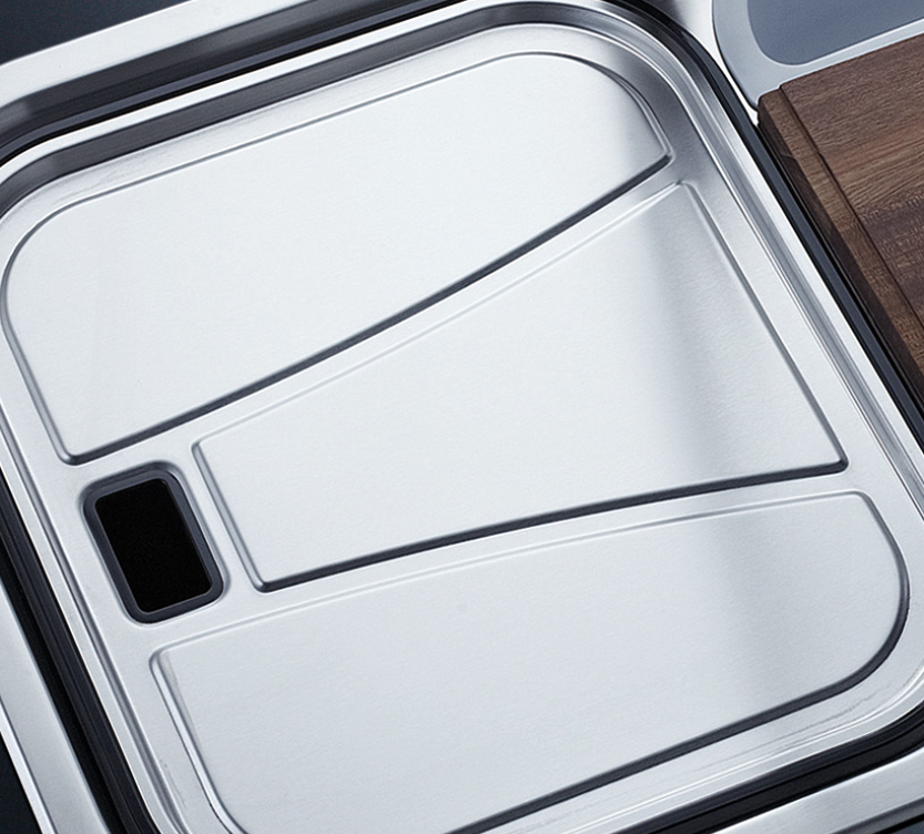 完美的水槽加固設(shè)計,有效防止溢水,水槽槽體一次成形的凹型設(shè)計,免除流水滲漏損壞櫥柜,完美凹型水槽,打造優(yōu)雅廚房