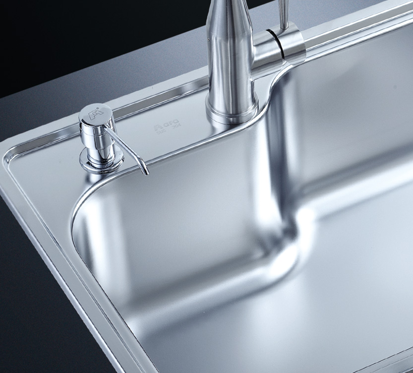 阿發(fā)水槽立邊采用國際先進的10-25°小R角一次成型拉伸技術(shù),更具立體感與時尚潮流,亦能充分擴展水槽利用空間;一次成型拉伸技術(shù),杜絕了焊接工藝易產(chǎn)生的水槽生銹,脫焊事故,充分保障水槽50年以上的使用壽命