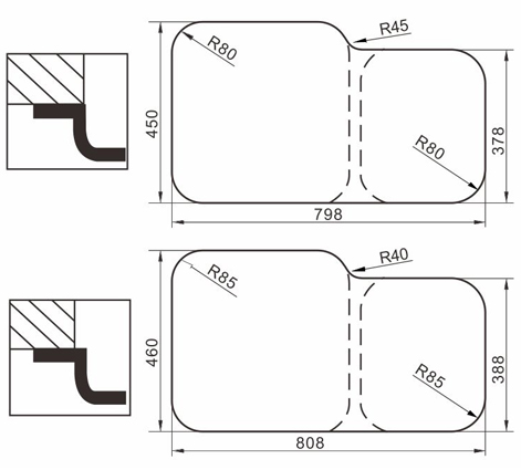 阿發(fā)水槽立邊采用國(guó)際先進(jìn)的10-25°小R角一次成型拉伸技術(shù),更具立體感與時(shí)尚潮流,亦能充分?jǐn)U展水槽利用空間;一次成型拉伸技術(shù),杜絕了焊接工藝易產(chǎn)生的水槽生銹,脫焊事故,充分保障水槽50年以上的使用壽命